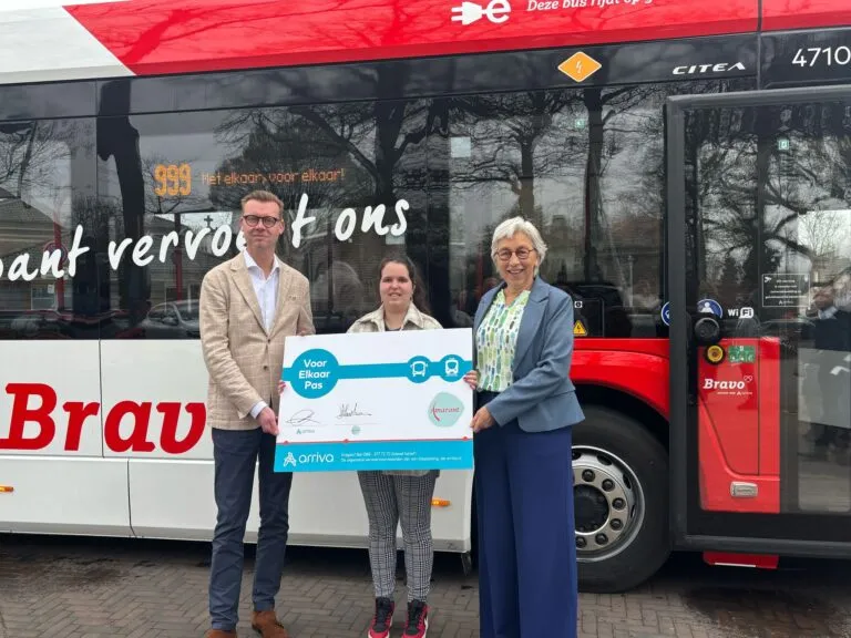 Vanmiddag hebben Amarant en Arriva hun samenwerking beklonken waardoor cliënten van Amarant met de Voor Elkaar Pas (VEP) van Arriva vrij kunnen reizen door heel Brabant. Loena van den Brand, cliënt van Amarant, nam symbolisch de eerste Voor Elkaar Pas in ontvangst van Hanneke Henkens, directeur Sociaal Domein van Amarant en Jan Pieter Been, regiodirecteur van Arriva. Amarant is daarmee de allereerste zorginstelling in heel Nederland die op deze manier het vervoer voor een deel van haar cliënten invult. Na een pilot met 10 cliënten is besloten om de VEP-pas voor alle cliënten die hiervoor in aanmerking komen beschikbaar te stellen.