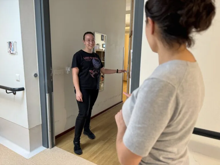 “In het begin moest ik echt wel eventjes wennen. Daar waar ik eerst met oudere en dementerende bewoners werkte, kennen ze hier ineens je naam. Dat vond ik in het begin wel gek.” Over het algemeen wonen er op Slot Loevesteinstraat 44-48 cliënten die vrij zelfstandig zijn. “Iedereen heeft een eigen vorm van zorg nodig. Bij de een is het alleen tandenpoetsen of een zalfje smeren. Maar natuurlijk wonen er ook cliënten die veel zorg nodig hebben. Op dat moment kunnen we die hulp ook bieden.”