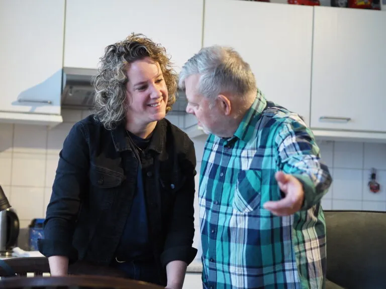 De verwanten van cliënten die wonen op Spie 12-14 worden veel betrokken in het proces. “Het is voor dit team een vanzelfsprekendheid dat zij onderdeel uitmaken van het leven van hun zoon/dochter/broer/zus/naaste.” Daniëlle vertelt dat de drienamiek scholing binnen de voorziening voor hun dan ook vanzelfsprekend samen met de verwanten is gevolgd. “Zo kunnen we samen zorgen voor een zo goed mogelijk leven van onze bewoners!” Ze vertelt vol enthousiasme dat er van de 14 cliënten die op de voorziening wonen, voor 11 van hen verwanten aanwezig waren bij de scholing. “Als voorziening hebben ze ons een cijfer mogen geven. Zeggen we wat we doen en doen we wat we zeggen?” gaat Daniëlle verder. “We scoorden gemiddeld boven de 8. Dat geeft je als senior en als team toch wel echt een onwijs goed gevoel. Al het harde werk wordt ook gezien en gewaardeerd.” Wel geeft Daniëlle aan dat ze merkt dat het werken met de doelgroep zwaarder wordt. “Misschien is zwaarder niet helemaal het goede woord”, vervolgt ze. “Maar het is wel complexer en soms ook op medisch gebied. Dit soort onderwerpen worden ook besproken met verwanten tijdens de familie avonden die georganiseerd worden. Door hierover samen in gesprek te gaan, zorgen we ervoor dat we naar elkaar luisteren en elkaars situatie proberen te begrijpen.”