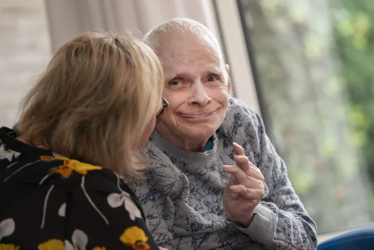 Dat Harrie lacht, contact zoekt en de begeleiding omhelst, was lange tijd namelijk geen vanzelfsprekendheid. Zo’n 25 jaar verbleef hij op een woongroep voor cliënten met gedragsproblemen, op Bosstraat 2. En dat begon steeds meer te wringen, blikt Lisette terug. “Wij kregen de vraag of Harrie hier kon komen wonen. We twijfelden wel: zou Harrie passen op deze woongroep voor ernstig meervoudig beperkte cliënten? Hij had een verleden van gedragsproblemen en volgde een heel strak dagprogramma waar absoluut niet van mocht worden afgeweken.”