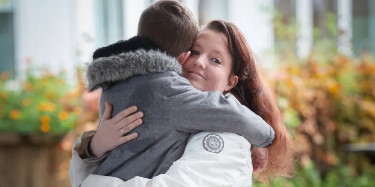 Xavi rent naar zijn moeder toe en geeft haar een stevige knuffel. Hier, op de SBO-locatie Zonnesteen in Tilburg-Zuid, voelt hij zich zichtbaar thuis. Elisia geeft haar jongste zoon een innige knuffel terug. En wég is Xavi weer, op weg naar zijn kleutergroep.