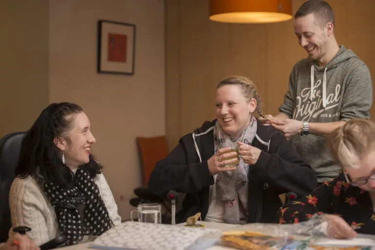 De Enclaveberg in Roosendaal is een 24-uurs woonvoorziening voor cliënten met niet-aangeboren hersenletsel en/of een lichamelijke beperking. Iedere cliënt heeft een eigen appartement en er is een gezamenlijke huiskamer waar we samen eten, koffie drinken of een spelletje spelen. De meeste bewoners hebben werk of dagbesteding buiten de locatie, maar ook binnen de woning organiseren we activiteiten. We bieden een huiselijke sfeer waarin persoonlijke aandacht en ondersteuning centraal staan.